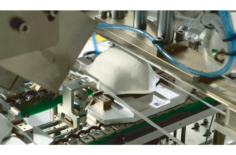 1. Integrated design, from feeding raw materials to cup forming, filter fabric pre-forming, cup border welding & cutting, automatic transferring to outer nose clip, pad printing, headband coiling, automatic ultrasonic breathing valve welding (optional), manipulator grab and automatic convey, etc. One station of automatic cup type mask production.