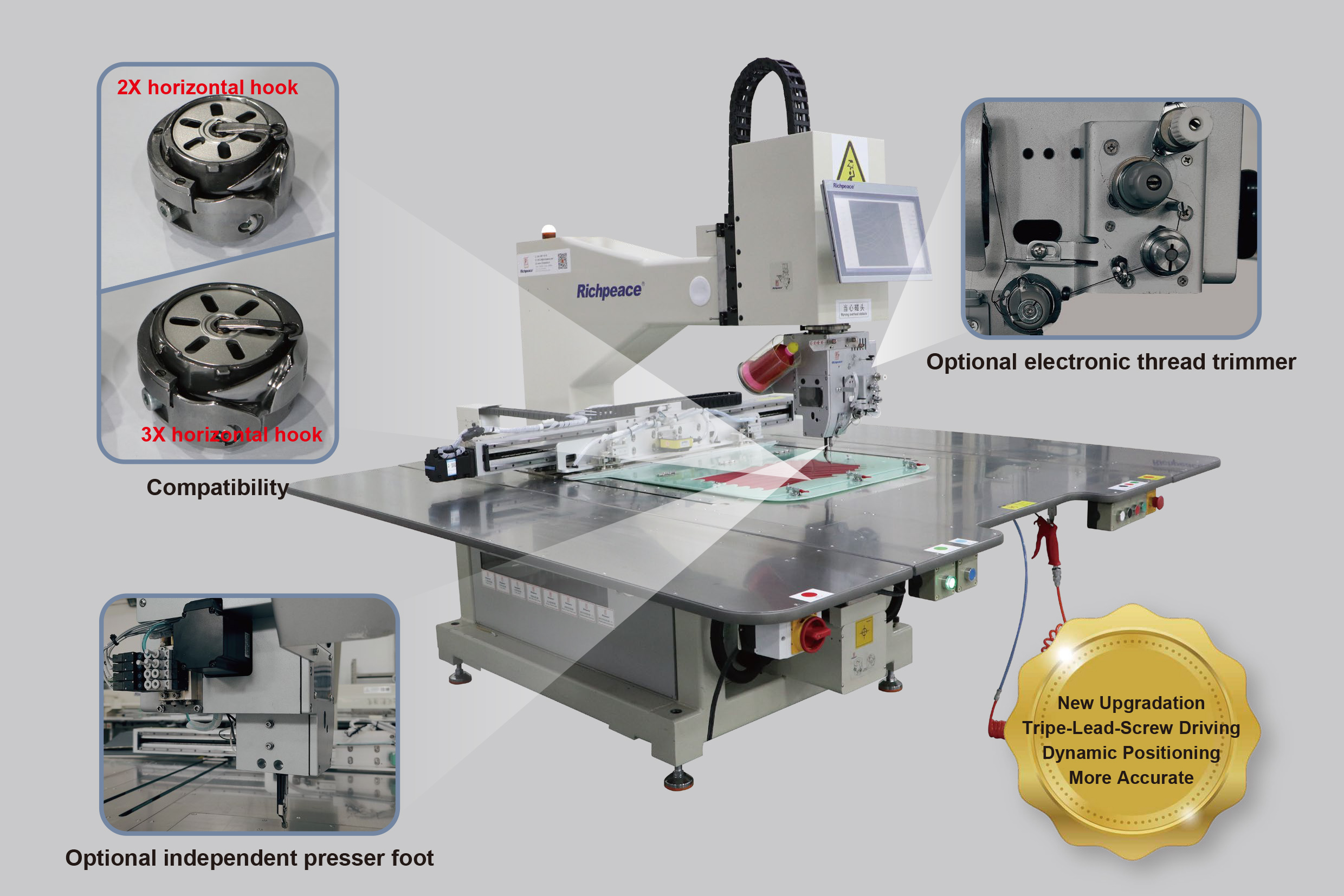 Richpeace Automatic Arbitrary Rotary Single Needle Leather Sewing Machine (Horizontal hook)