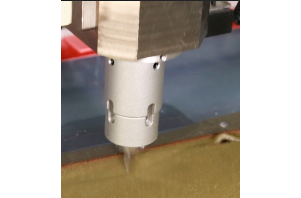 4. The cutter can be lifted up and down. When it gets down, it cuts inside the fabric to achieve perfect cutting.