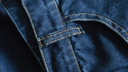 3. Double needle high speed, 1pc complete in 12 sec. (with 5 belt-loops).