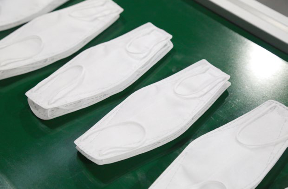 1. Automatically manufacture 4-layers fish mask. Production line is One-to-Two design, including one set of mask-making station connects one set double earloop welding station, one set shunt transmission device, one set material loading stand, one set electronic control system. The machine is delicate in structure, easy to operate, with stable and reliable performance.