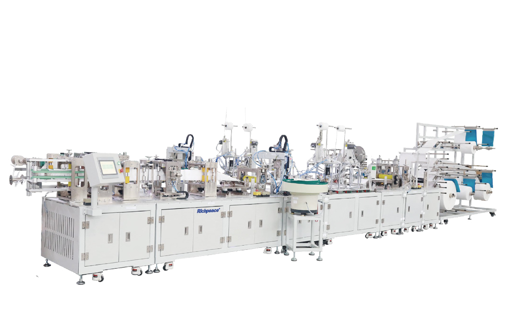 1. Fully automated production of N95/KN95 foldable masks includes, from fabric input to finished mask output, automatically complete nose clip insertion, pattern welding, logo printing, earloop welding, Breathing Valve punching and welding, mask shape cutting and scrap separation. The final mask is standard size and pass rate is high.