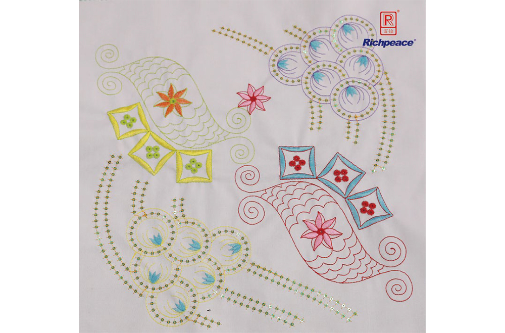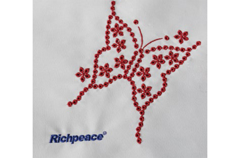 Boring in the fabric realizes special hollowing effect with edge-embroidery after holes punching.