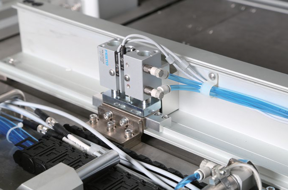 3. The sewing head and rotary hook move on X-axis synchronously to reduce the machine size.