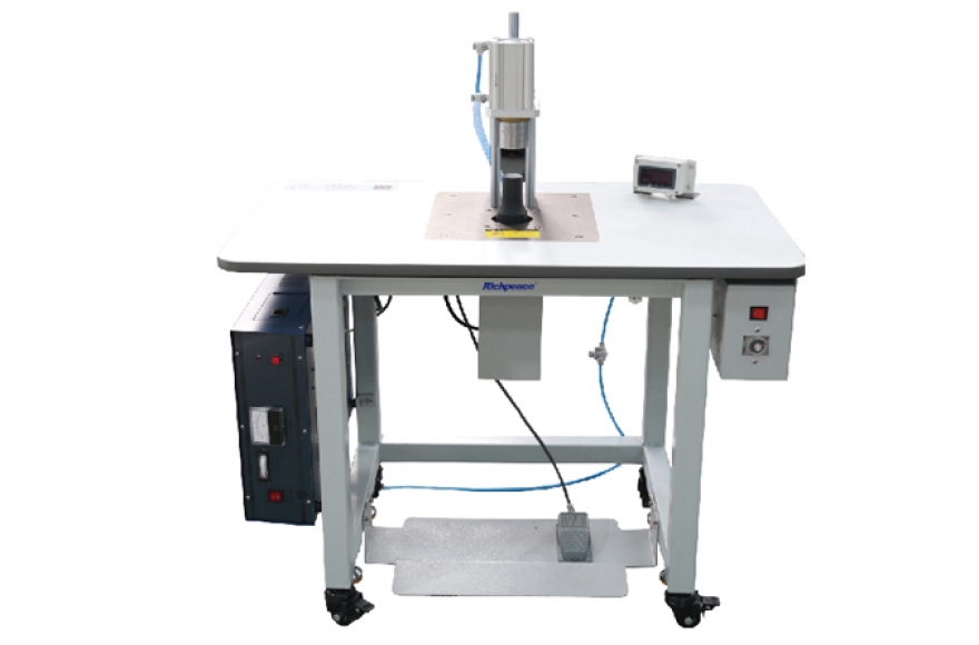 Richpeace manual valve installation machine, adopt strong power ultrasonic welding, the welding point is firmly bonded, looked good and efficient. The machine is widely used for welding valve on different kinds of mask. Machine action is controlled by pedal plate, easy to operate. Output production is 8~15pcs/min, digital display panel to count. Richpeace electronic control system and SMC brand air cylinder control system works together, perform stably, suitable for continuous working. Machine integral welded steel frame is stable and compact. Casters enable machines move conveniently. Valve size can be customized.