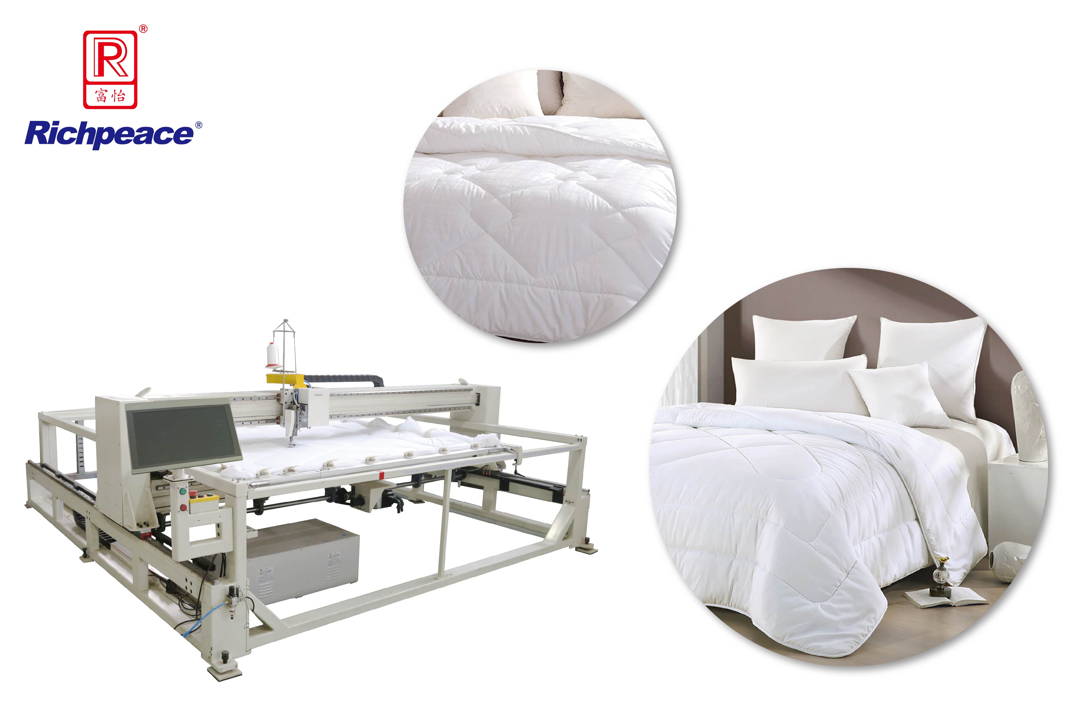 4. Customized sewing head, independent-controlled presser foot, adaptable for different thickness (within 50mm) material quilting.