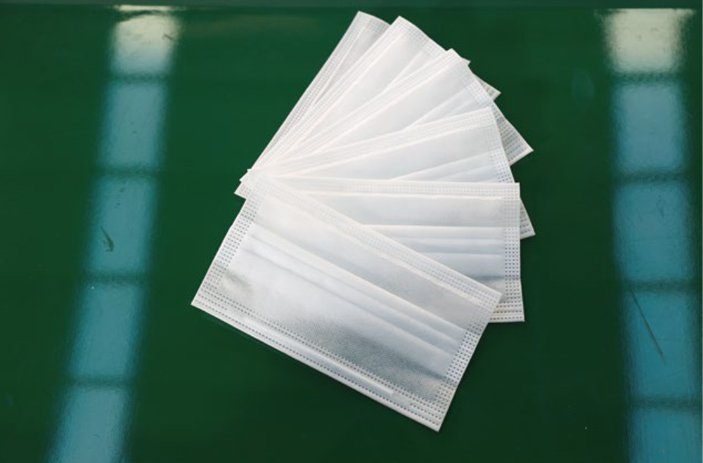 3. Automatic production, 3-4 layers PP spunbond non-woven fabric and melt blown fabric are feeding with nose clip insertion to edge-sealing and final cutting to mask.